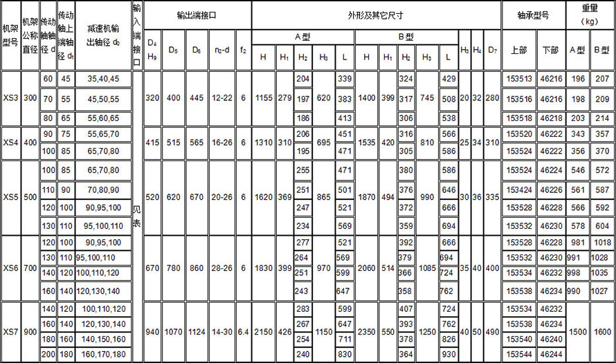 XD、XS型機(jī)架輸入端接口尺寸